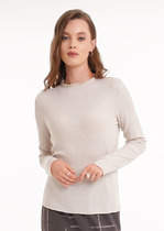 Модель Ирина, ее рост 167 см, параметры 85-61-89 см. На ней пуловер единого размера 42-52.