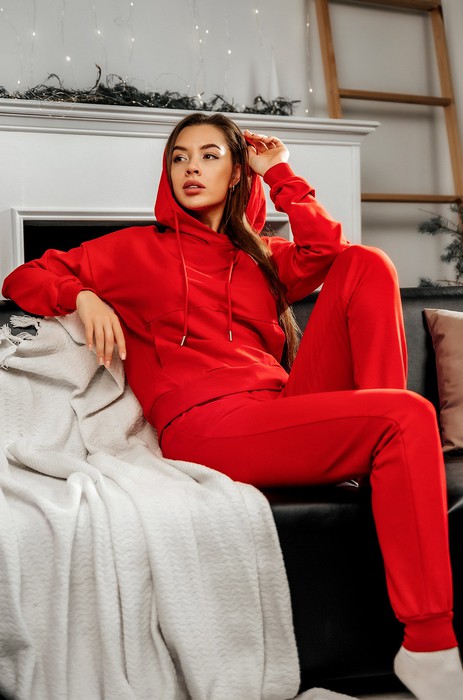 Свободный крой, мягкая горловина, эластичные манжеты, практичные карманы – женский ярко-красный костюм подарит комфорт и уверенность!