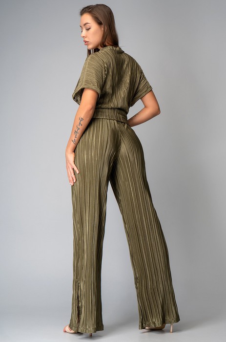 Откройте для себя изящество и комфорт с женским брючным костюмом! Роскошный летний костюм плиссе представлен в зеленом цвете. Плиссированный костюм-двойка создан для женщин и девушек, ценящих удобство и современный стиль в повседневной жизни, помогая сиять каждый день лета.