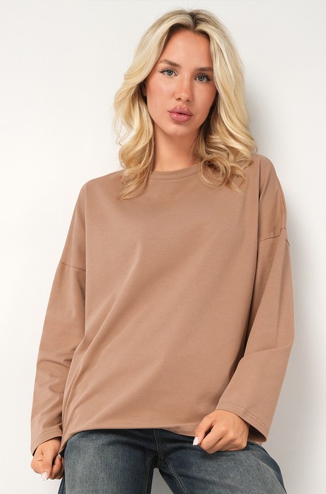 Женский лонгслив оверсайз создан, чтобы дарить свободу и комфорт в любую погоду. Однотонный бежевый лонг смотрится стильно и сдержанно, а хлопковый трикотаж делает его невероятно приятным к телу.