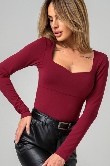 Тот самый лонгслив, в котором комфортно каждый день!Шикарный женский лонгслив с глубоким декольте выполнен из невероятно нежной вискозы. Длинный рукав, квадратный вырез, облегающий крой делают бордовый лонг для женщин эффектным и элегантным. Приталенная модель не только не оставит девушку незамеченной, но и подарит комфорт в течение дня.
