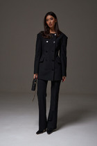Приталенный крой делает силуэт безупречным. Классические детали в полной мере делают ваш образ неотразимым: благодаря строгим линиям и лацканам жакет красиво подчёркивает вашу изящную фигуру.