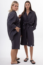 Модель Лера, ее рост 167 см, параметры 85-61-88. На ней костюм единого размера 42-52.