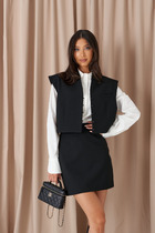 Жилет выполнен из джинсовой ткани голубого цвета без подклада. Воротник отложной. Верх изделия отрезной - кокетка сзади, кокетка спереди. По низу отрезная планка-пояс, на поясе хлястик с кнопкой. Застёжка в изделии центральная - кнопки. На уровне линии груди функциональные карманы с клапаном. Длина спинки 69 см
