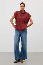 Жилет свободного силуэта.Металлические пряжки по бокам.Боковые швы соединяются хлястиком на пряжке.Карманы с клапанами.Разрез по спинке скреплен декоративным швом.Сочетается с блузками, юбками этой же коллекции.