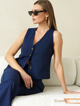 Жилет прямого свободного силуэта из теплой ткани "барашек". Перед с настрочными карманами. Застежка на 3 петли и пуговицы. Жилет на подкладке. Длина жилета - 52 см.