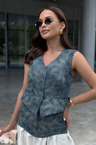 Совместные покупки Нижний Тагил Женская одежда Жилеты — Жилет на молнии "Матрёшка" с капюшоном, тёмно-синий, расцветка 1