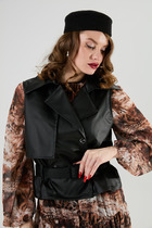 Жилет на молнии с воротником-стойкой, красный с рисунком павлопосадского платка.