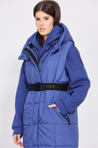 Жилет полуприлегающего силуэта на подкладке. По переду вытачка, переходящая в подрез, функциональный карман. Застежка на петли-пуговицы. По спинке вытачки и хлястик.