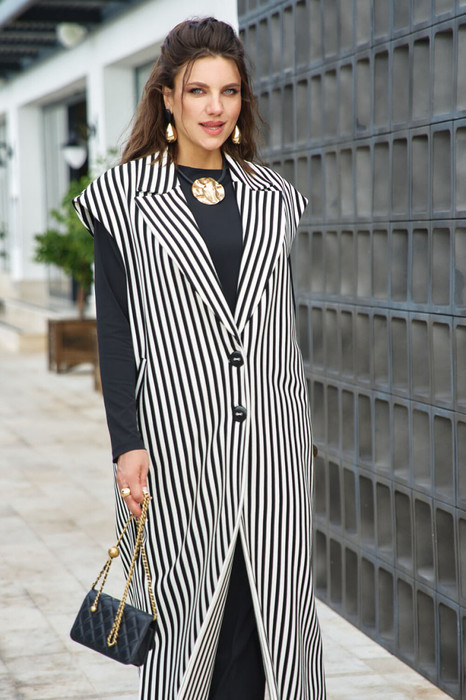 Совместные покупки Нижний Тагил Женская одежда Жилеты — Жилет Vittoria Queen 27173ж черный/молоко полоска
