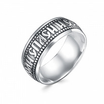 Кольцо (Господи Спаси и Сохрани) из серебра родированное литьё