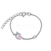 Браслет детский Единорог Сердце из серебра с фианитами родированный