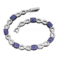 Браслет из серебра с натуральным голубым топазом и кубическим цирконием родирова