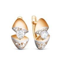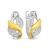 Серьги-продёвки из золочёного серебра с фианитами и родированием
