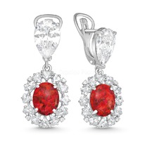 Серьги из серебра с красным синтетическим опалом и фианитами родированные