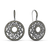 Серьги из чернёного серебра с горным хрусталём и марказитами