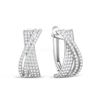 Серьги женские из серебра с фианитами родированные