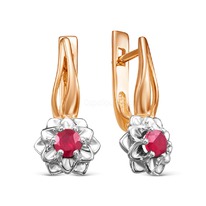 Серьги-пусеты из серебра с синт. рубином и фианитами родированные