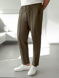 Брюки прямые на резинке из футера двухнитки с эластаном с затяжкой по низу