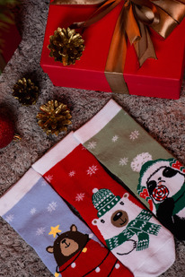 Новогодние носки "Санта-Клаус" с пушистой нитью 374