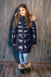 Зимнее синее пальто для девочки премиум класса