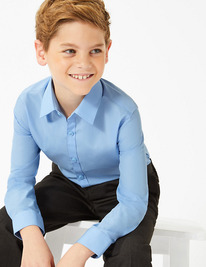 marksandspencer 3pk Boys Slim Fit Easy Iron School Shirts Blue