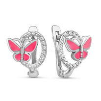 Серьги детские из родированного серебра с эмалью и фианитами - Бабочки 925 пробы