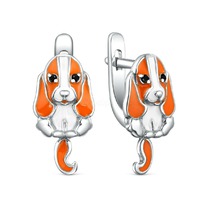 Серьги детские из серебра с эмалью и фианитами родированные - Собачки