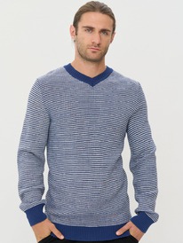 ESENIA Кардиган мужской полушерстяной Толстой вязки на короткой молнии - Синий