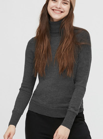 UNIQLO WOMEN EXTRA FINE MERINO TURTLENECK SWEATER 08 DARK GRAY