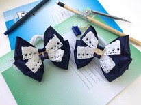 Школьный бант английский синий с белым кружевом