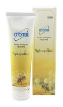Зубная паста на основе экстрактов прополиса и зеленого чая. Расщепленный прополис лучший природный антибиотик он убивает болезнетворные микробы и сохраняет полезные микрофлоры полости рта. Экстракт зелёного чая оказывает успокаивающее воздействие и обладает антиоксидантными свойствами. Зубная паста от Атоми предотвращает появление кариеса, превосходно справляется с зубным налётом и появлением зубного камня, борется с кровоточивостью десен и устраняет неприятный запах изо рта. Эффект: Удаление зубного налета; Предотвращение отложения зубного камня; Предотвращение образования зубных полости; Удаление неприятного запаха. Способ применения: Нанести необходимое количество на зубную щетку и почистить зубы. Действующее вещество: диоксид кремния, монофторфосфат натрия, фторид натрия, пирофосфат натрия; Другие добавки: глицерин, экстракт зеленого чая, раствор лаурамидопропилдиметилглицина, мастичное масло, настойка мирры, гидрат сахарин-натрия, стевиол-гликозид, Ароматизатор STRUS HF60052, экстракт полыни, апельсиновое масло, масло эвкалипта, ксилит, очищенная вода, комбинированный ароматизатор (мятный аромат HF-6596R), натриевая соль карбоксиметилцеллюлозы, кокоилглутамат натрия, бикарбонат натрия, экстракт прополиса, водная кремнивая кислота, раствор D-сорбита, L-ментол.
