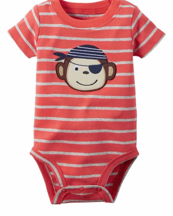 Б/У бодик известного, американского бренда Carters, Appliqu? Bodysuit. Боди с коротким рукавом для малыша красный "Пират". Боди - это отличное решение на каждый день. Боди с коротким рукавом изготовлен из очень мягкого и комфортного хлопка. Одевается через голову и имеет удобную горловину. Застежка между ног с наружными кнопками на укрепленном основании для быстрого и легкого переодевания и смены подгузников. Полосатый принт с аппликацией и вышивкой пирата. Кнопки не содержат опасного Никеля, который может вызвать раздражение нежной кожи ребенка. Вместо обычной этикетки используется термоэтикетка, которая не вызывает раздражения кожи даже у самых маленьких деток. Подходит для машинной стирки. Цвет: Red. Состав: 100% хлопок. Размер: 12M для мальчика 12 месяцев, ростом 72-76 см, весом 9,3-11,1 кг. Состояние: б/у, отличное.