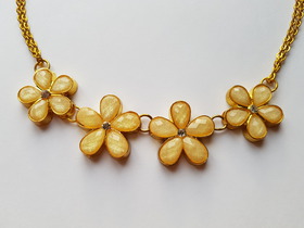 Новое ожерелье, металлическая двойная цепочка с 4 цветками.