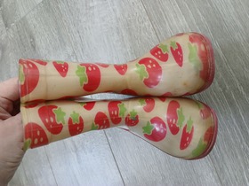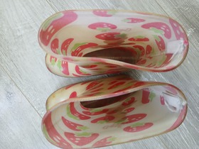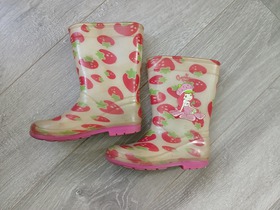 Детские резиновые сапоги с ярким дизайном клубники. Размер 25 (стелька около 15.5-16 см).