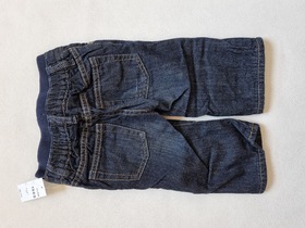 Новые джинсы известного американского бренда GAP, 1969 lined pull-on original fit jeans. Джинсы оригинального кроя 1969 года на подкладке без застежки. Джинсовая ткань премиум-класса с подкладкой из мягкого джерси. Талия с дополнительной эластичной резинкой. Застежка по центру на кнопку с искусственной ширинкой. Модель с пятью карманами. Манжеты можно свернуть и развернуть. Цвет: dark wash. Состав: 100% хлопок. Размер: 6-12 M для мальчика 6-12 месяцев, ростом 69-74 см. Замеры: ширина талии 21 см, ширина бедер 26 см, длина по внутреннему шву 22 см, длина по внешнему шву 38 см, ширина штанины 13 см.