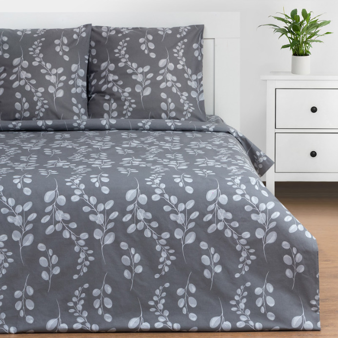Заказать Комплект постельного белья из поплина Эвкалипт серый