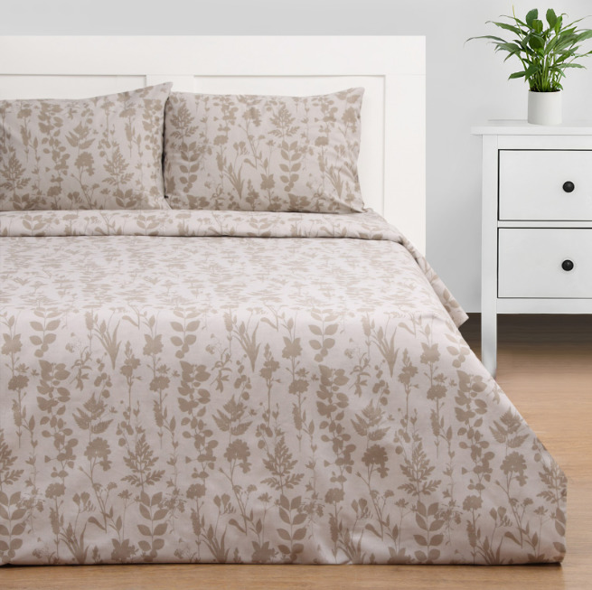 — Комплект постельного белья из поплина Веточки бежевый