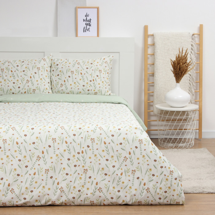 Комплект постельного белья из поплина Лепесток синий/жёлтый