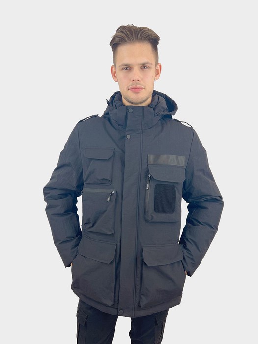 Капюшон отстегивается, верх 6 карманов, внутри 2 кармана, наполнитель Полиэстер 100%.