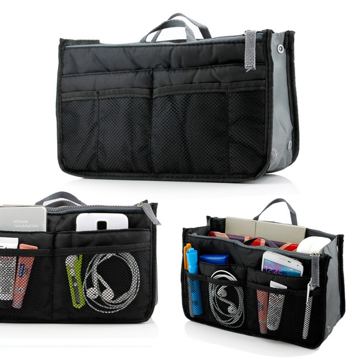 При помощи органайзера, даже самая переполненная вещами сумка становится тем местом, где все предметы, даже самые мелкие, находятся в идеальном порядке.С помощью органайзера, Вы сможете мгновенно переложить всё необходимое в другую, подходящую Вам по стилю одежды сумочку. В органайзере есть место для всех таких нужных Вам предметов: косметики, очков, талонов и карточек и многого-многого другого.Выполнена из очень прочной , плотной ткани. Размер: 26 * 16см Материал : Полиуретан, нейлон + хлопок