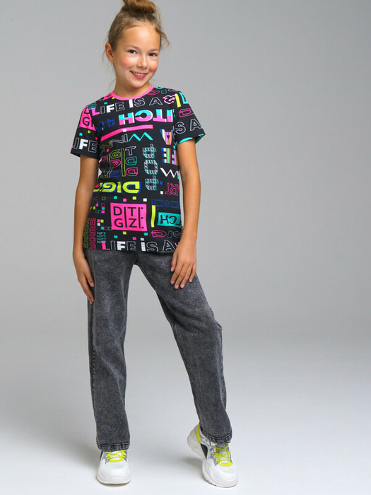 Футболка из качественного и приятного на ощупь трикотажа джерси, высокое содержание хлопка, а благодаря наличию эластана в составе ткани, изделие проще в уходе и держит форму.
