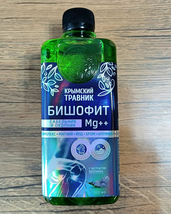 Из закупки Крымский травник: раствор бишофита для приготовления компрессов и ванн, с сабельником и окопником. 500мл. Новый, не вскрывался. Год.до 02/27г.
