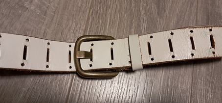 Белый ремень из прессованной кожи, регулируется длина, интервал между отверстиями 2,5 см