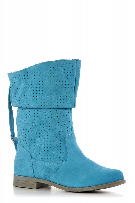 Модель выполнена из натуральной замши небесно голубого цвета дополнена мелкой перфорацией и ремешком для изменения высоты. Устойчивая нескользящая подошва и подкладка из плотного текстиля обеспечат комфорт и тепло. Цвет: Голубой;