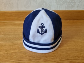 Б/У шапка популярного Российского бренда Чудо Кроха. Летняя шапка с подгибом, вышитым якорем в морском стиле. Цвет: синий. Состав: 65% хлопок, 35% полиэстер. Размер 48, для мальчика 2-3 лет, ростом 85-95 см. Окружность головы 48-50 см. Состояние: б/у, отличное.