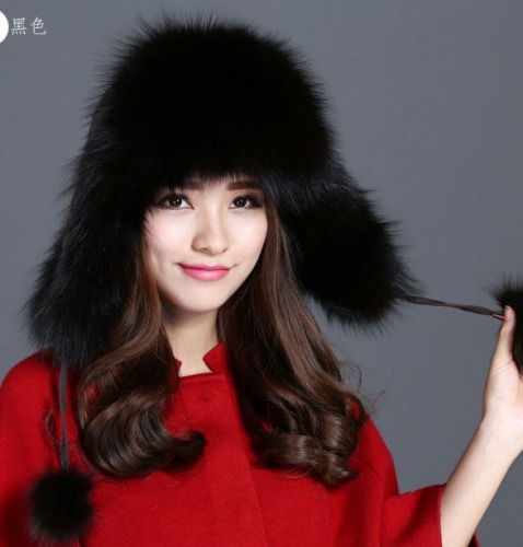 Шапка ушанка из меха лисы+текстиль
