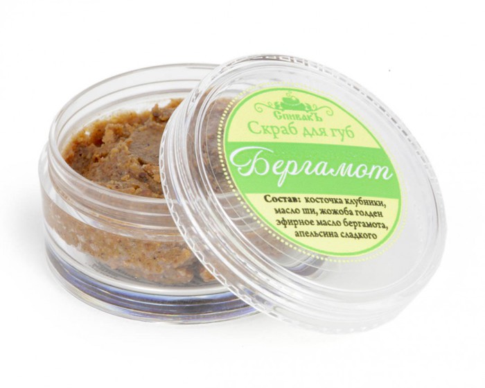 Скраб для губ Бергамот обладает ярким цитрусовым ароматом и является замечательным средством для ухода за кожей губ! В роли скрабирующих частиц выступает природный компонент — косточки клубники: они улучшают микроциркуляцию крови и мягко отшелушивают кожу, не травмируя её. Масла ши и жожоба смягчают кожу губ, устраняют сухость, трещинки. Эфирные масла бергамота и апельсина сладкого делают губы более упругими. После применения скраба остается ощущение напитанности и увлажненности, а цвет губ становится более ярким!
