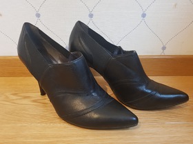 Туфли известного американского бренда Nine West, Next Up. Nine West – это бренд, с которым просто необходимо познакомится любителем про западной культуры одежды и обуви. Под именем выпускаются коллекции оригинальной обуви и аксессуаров для женщин и мужчин. Кожаные туфли выполнены с эластичными боковыми элементами, что обеспечивает лучшую подгонку и комфорт при ношении. Цвет: Black/Black Leather. Состав: натуральная кожа 100%. Состояние: б/у в хорошем состоянии, видимых следов износа не видно. Размер: 10 US , 40 наш, длина по стельке 26,6 см, высота каблука 10 см.